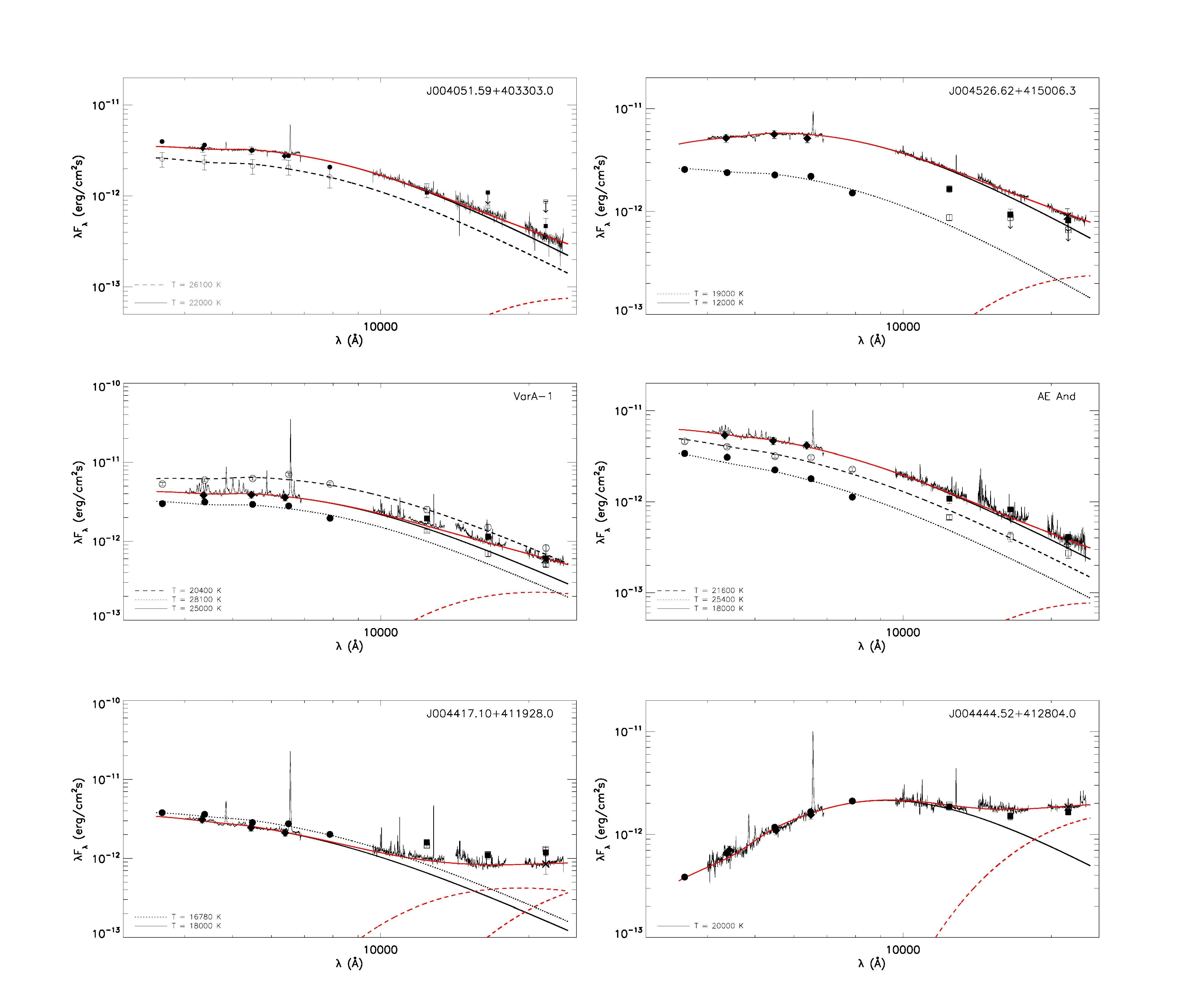 Figure 1 the spectral energy distributions for six stars are shown: upper