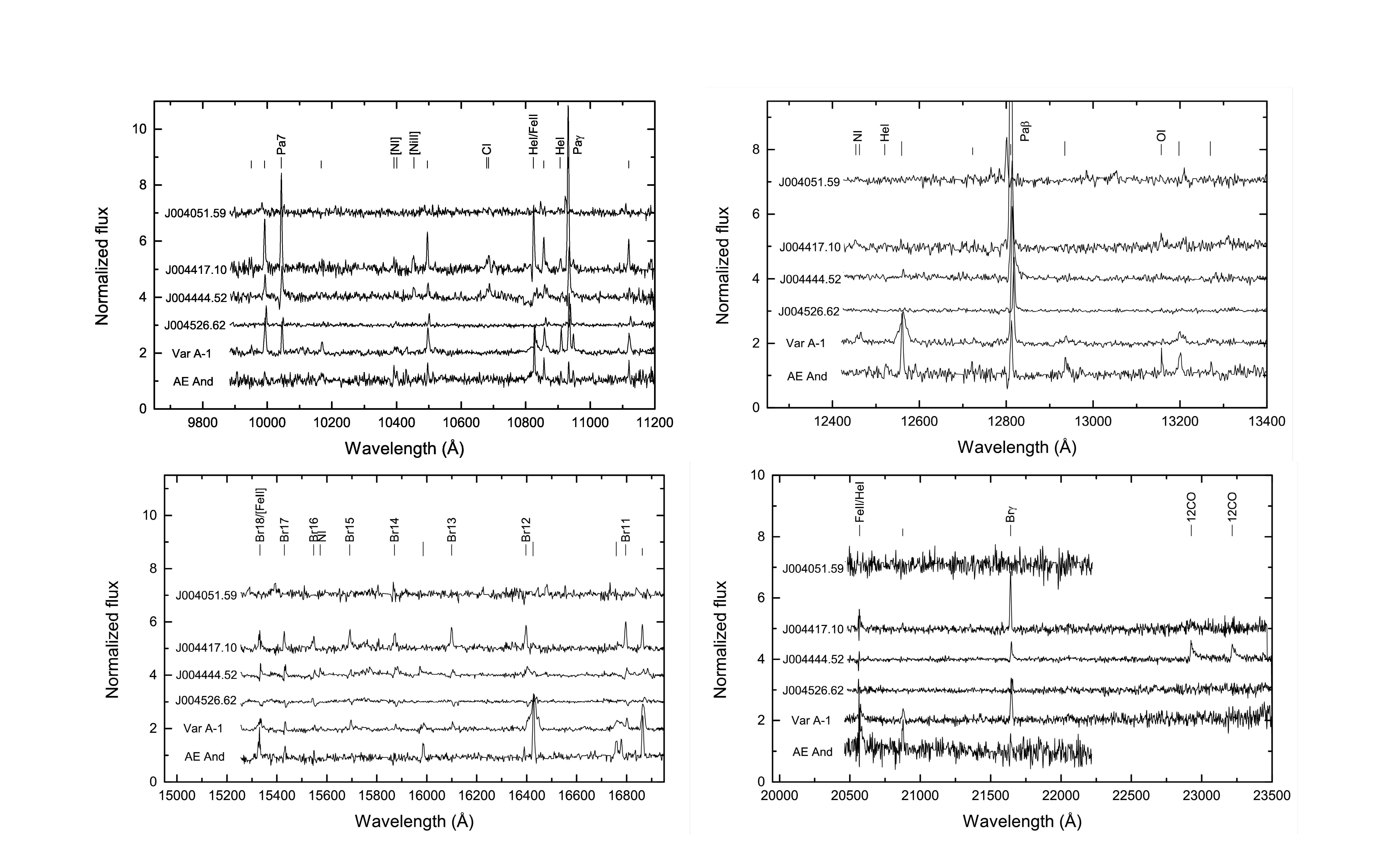 Var A-1 and AE And, the lower row - two new B[e]-supergiant stars in