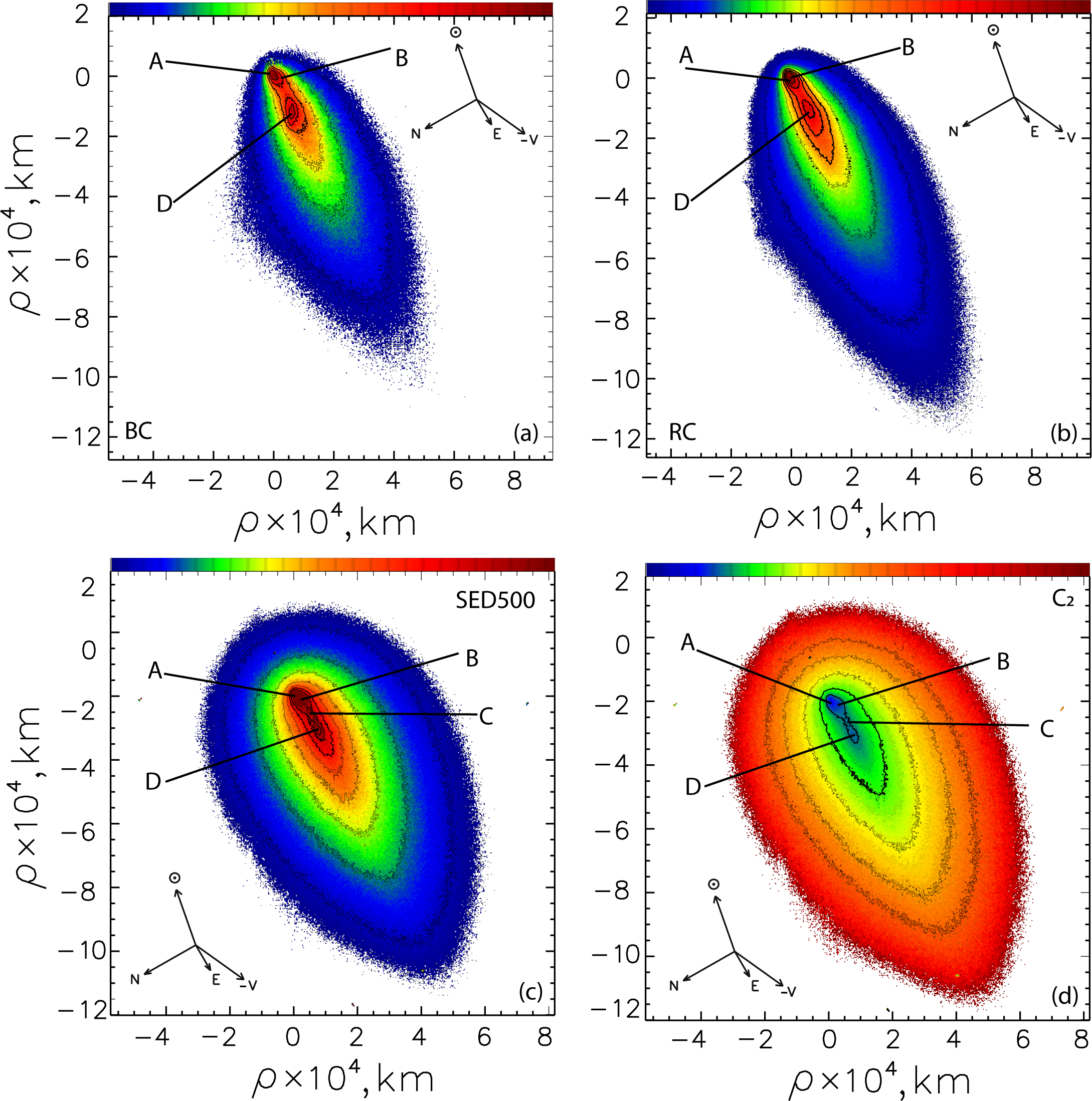 the dust-component subtraction. 4 fragments of the nucleus (A, B, C, D)