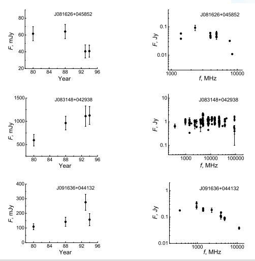 с 1980 по 1994 гг. Обнаружены 73 переменных радиоисточника со