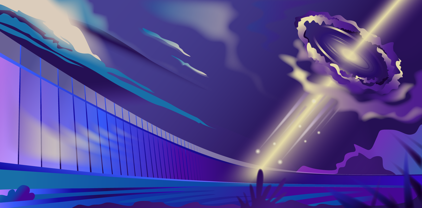 Иллюстрация. Телескоп РАТАН-600 помогает разобраться, где рождаются нейтрино. Дизайнер Дарья Сокол, пресс-служба МФТИ © |