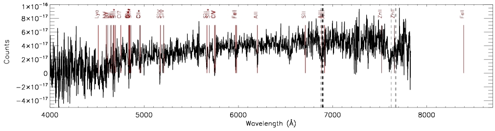 Спектр оптического транзиента GRB090726 с отождествленными линиями,