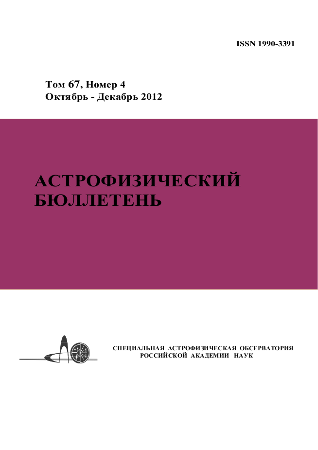 Том 67, номер 4. Астрофизический бюллетень. Октябрь — декабрь 2012 г.