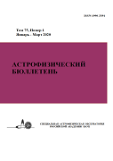 Том 75, номер 1. Астрофизический бюллетень. Январь - март 2020 г.